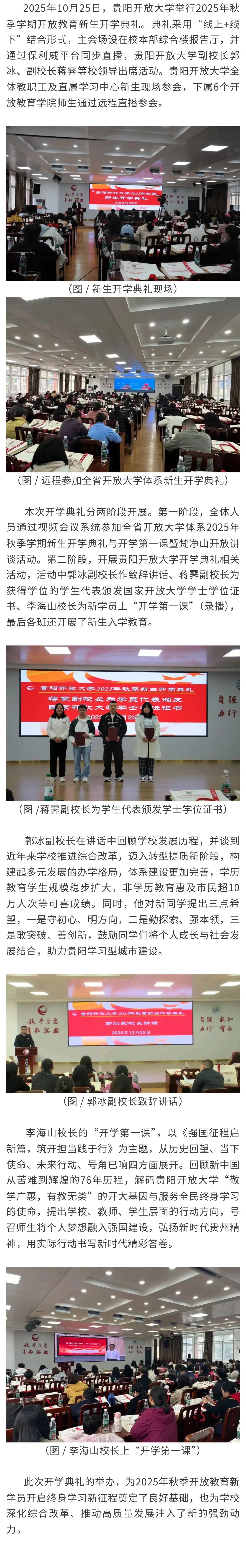 贵阳开放大学举行2025年秋季学期开放教育新生开学典礼