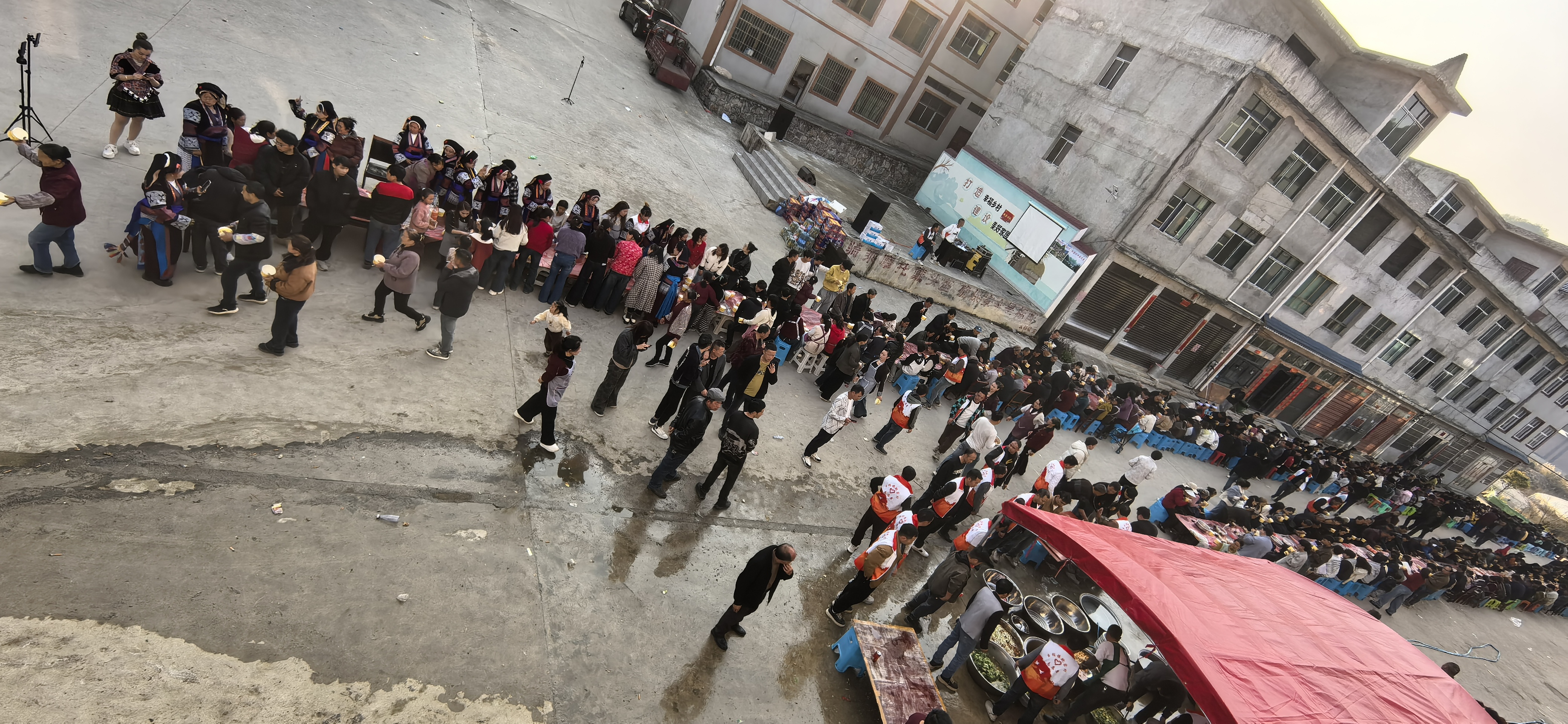除了精神上的“文化大餐”,鲍家村还为乡亲们准备了丰盛的“团圆家宴”。活动特别组织了传统的“杀牛宴”与“杀猪宴”,以最朴实隆重的礼仪,款待辛勤劳作一年的全体村民。更显心意的是,村里广发“英雄帖”,诚挚邀请远乡近邻共聚一堂,同享极具地方特色的“长桌宴”。