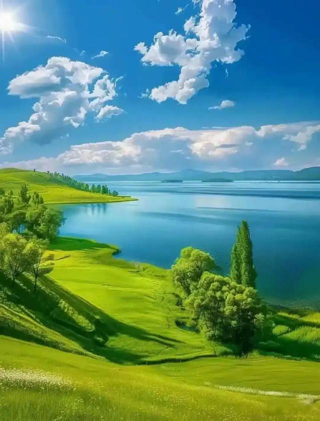 蓝天揉碎在湖面,绿意铺展到天边,风掠过草地,把所有美好都吹向眼前。